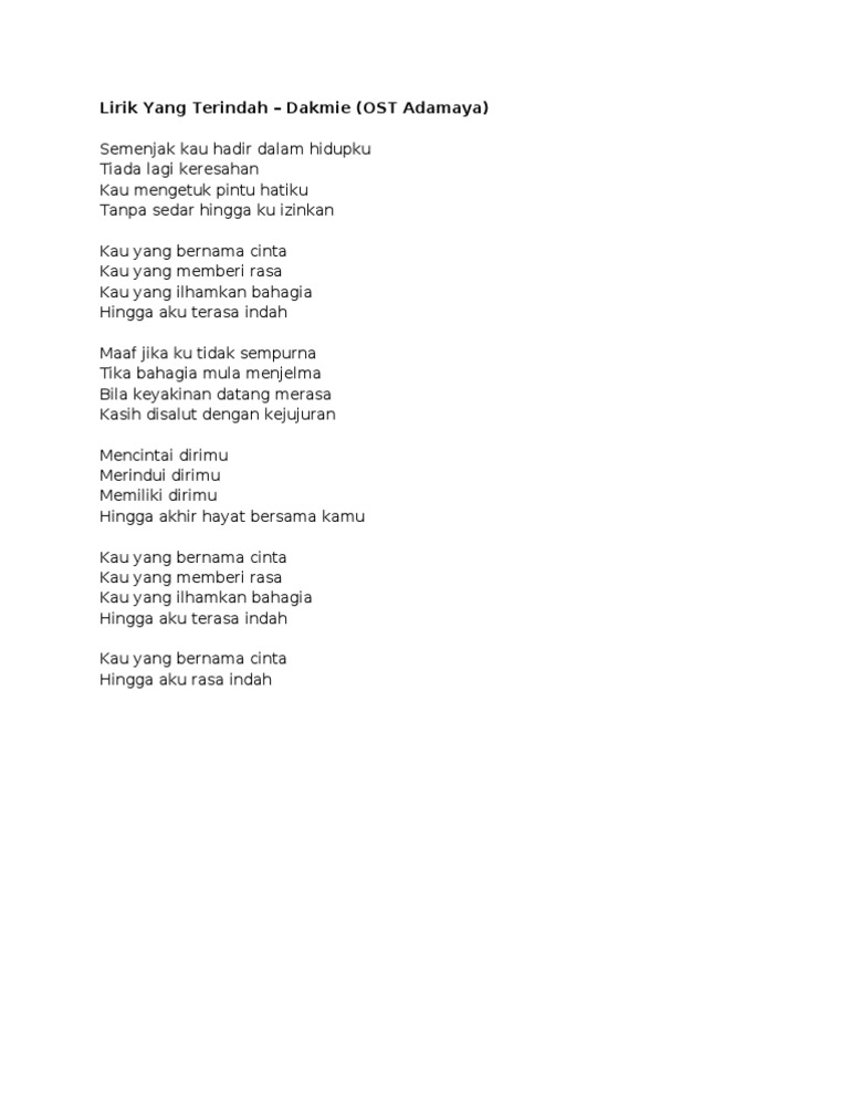 Ia cukup bermakna sebelum ku terlena. YANG TERINDAH - ACHEY Official Lirik Video Lirik Yang Terindah. Achey - Yang Terindah Chord Artist.